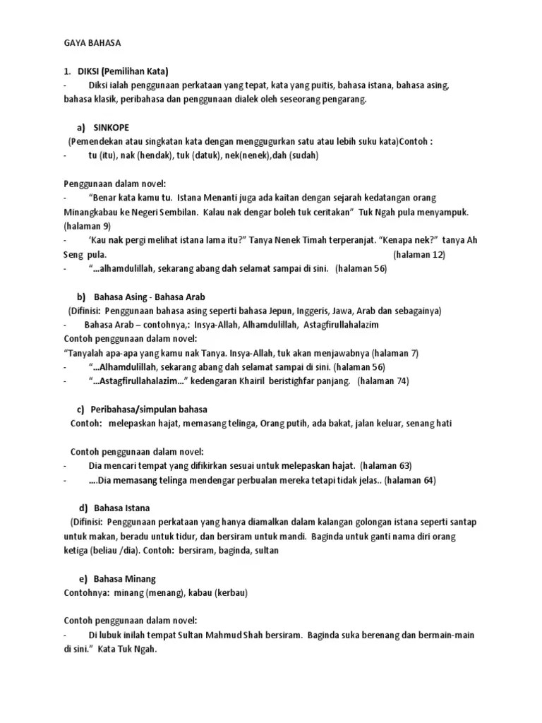 Contoh Gaya Bahasa Dalam Novel / Pdf Gaya Bahasa Enkyokuhou Dalam Novel Nihon Kogyou Ginkou Karya Ryo Takasugi - Simile, dan metafora sebagai gaya yang dominan dalam novel terjemahan sang pengejar.